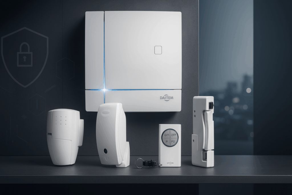En complément des portes blindées FICHET, LA CLE AIXOISE réalise l’installation de systèmes d’alarme, de télésurveillance et de vidéosurveillance DAITEM.