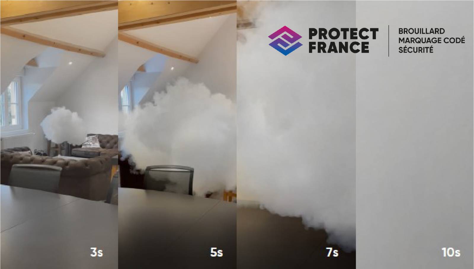 En effet, au moment de l’effraction, le générateur se met en route au même titre qu’une alarme et permet de compliquer la vision de la marchandise.