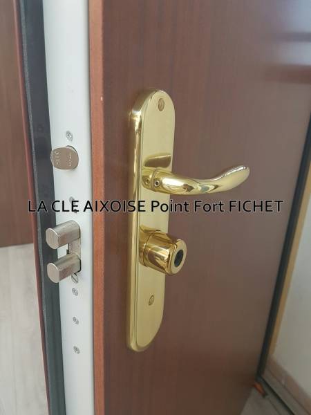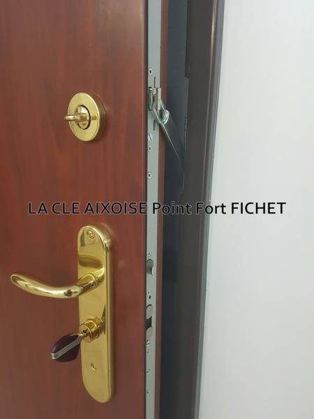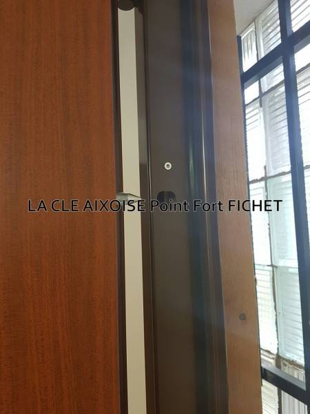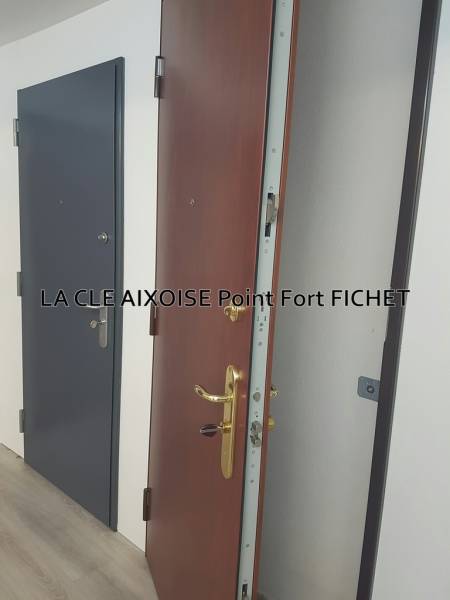 LA CLE AIXOISE vient d’installer la porte blindée FOXEO HIS de la marque FICHET avec panneau ton bois acajou foncé dans son show-room situé au 50 All. Marie Madeleine Fourcade RÉSIDENCE EFFICIENCE, 13100 Aix-en-Provence
